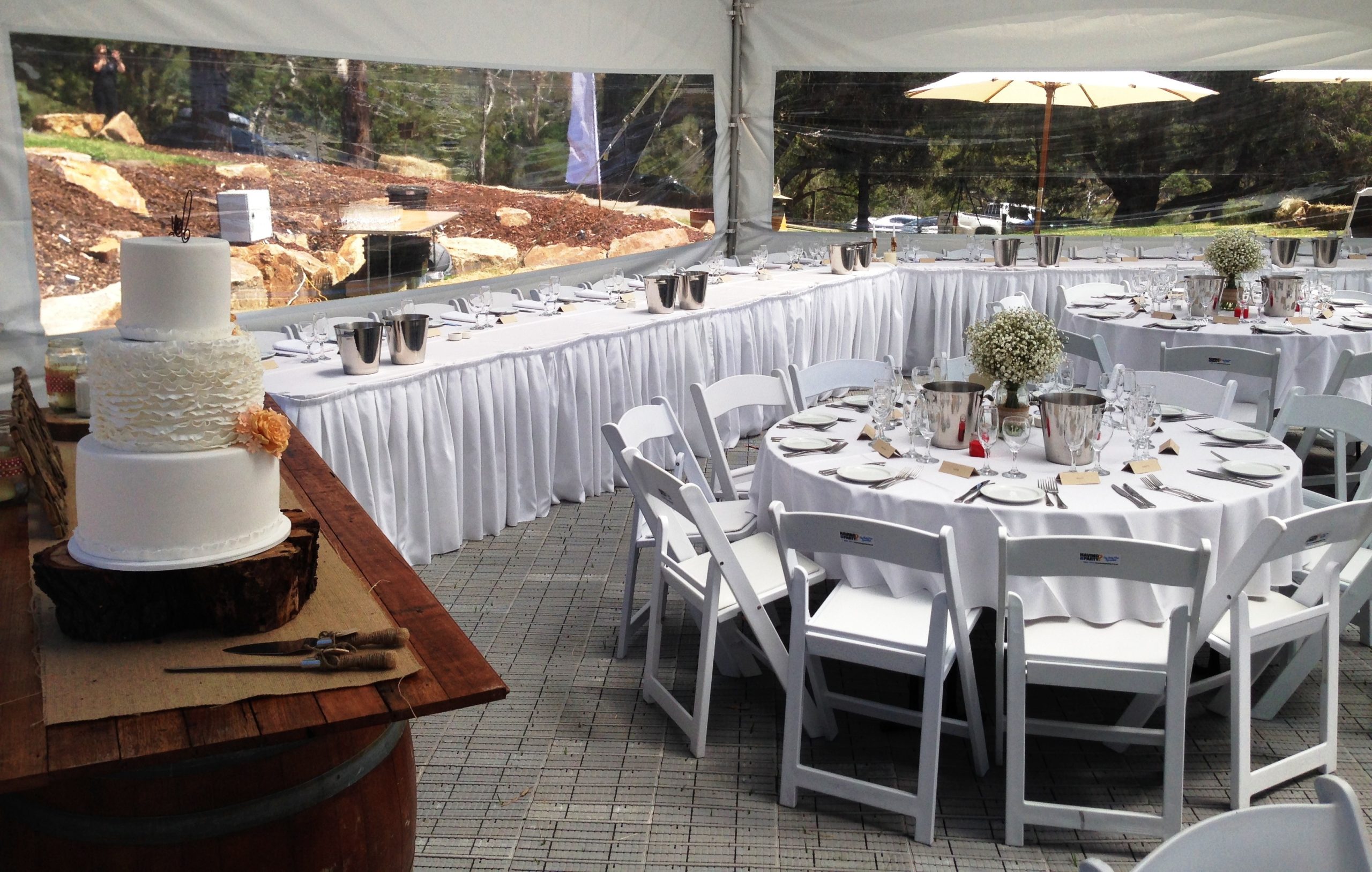 Suitable for a range of table sizes. The table, and linen tablecloth are hire separately. Clips are supplied with each skirt.