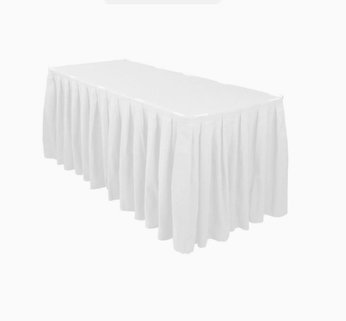 - Create a refined, professional finish with our pleated table skirts, available for hire. Ideal for weddings, corporate events, and formal functions, they provide a clean tailored look that instantly lifts presentation tables bridal tables and buffets. Featuring crisp pleating and a structured drape, each table skirt is professionally laundered and pressed after each hire to ensure the best finish on the day.